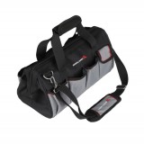 GM-005 16 Inch Polyester Soft Tool Bag is made of heavy-duty poly fabric body with poly ballistic trim and binding. Large main inner compartment holds a variety of hand and power tools. Large outer compartments with 7 pockets. Main compartments close with heavy-duty, double-pull zippers. 8 internal pockets, large D-ring. Textured, padded, adjustable shoulder strap and padded carrying handles.