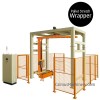 No-human operation. Loaded pallets feeding, film loading, wrapping, film cutting, pallets exiting, all works automatically.